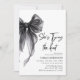 Fügen Sie Ihrer Feier eine Touch Eleganz hinzu mit dieser schwarzen Bow Bridal Dusche Einladung Vorlage. Mit einem schicken blauen Bogen und sanften, neutralen Tönen, "She's Tying the Knot" Brautparty Party, schick und modern Brautparty