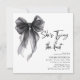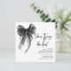 Fügen Sie Ihrer Feier eine Touch Eleganz hinzu mit dieser schwarzen Bow Bridal Dusche Einladung Vorlage. Mit einem schicken blauen Bogen und sanften, neutralen Tönen, "She's Tying the Knot" Brautparty Party, schick und modern Brautparty