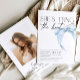 Diese minimale Bridal Dusche Einladung mit einem handgezeichneten Aquarellbogen in staubblau. Das moderne Thema "She's band the knot" ist perfekt für ein mädchenhaftes, aber modernes Hen Party. Auf der Rückseite können Sie Ihr eigenes Foto der schönen Braut hinzufügen.