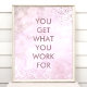 Sie erhalten, was Sie für Wasserfarben Zitat Poster arbeiten. Trendy maßgeschneiderte Aquarelltypografie motivierend inspirierendes Zitat Design. Dieses Mädchen Boss Design hat einen rosa Aquarell Hintergrund mit Rose Gold Glitzer Akzente. Motivieren Sie sich, hart zu arbeiten! Personalisieren Sie dieses benutzerdefinierte Design mit Ihrem eigenen Text oder Zitat.