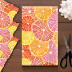 Weiße Zitrusfrüchte in den Farben Rosa, Korallen, Orange und rubinrote Grapefruits. Die handgezeichneten Zitrusscheiben sind in einem lustigen Muster für eine saftige Ergänzung zu einer farbenfrohen Polterabend-Dekoration.