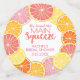 Weiße Zitrusfrüchte in den Farben Rosa, Korallen, Orange und rubinrote Grapefruits. Die handgezeichneten Zitrusscheiben enthalten eine Aquarelltextur für eine saftige Ergänzung zu einer farbenfrohen Dekoration des Polterabends.