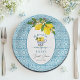 Ein elegantes Brautparty-Design mit blauem Fliesenboden und einer Tasse Zitronen.