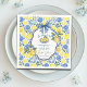 Ein elegantes Brautparty-Design mit blauem Fliesenboden und Zitronen.