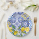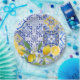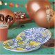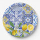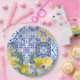 Diese Aquarelllemon fand ihr Hauptthema mediterrane Brautparty Papier Teller mit mediterranen Fliesen in Blau und Weiß.Die staubige Blau-, Gelb-, Marineblau- und Weißfarbe ist eine perfekte Farbpalette für klassische und formale Dekoration des Brautparty Party.