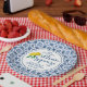Sie fand ihren Hauptpresse-Brautparty Party Teller. Mit Zitronen und italienischen blauen Fliesen dekoriert. Entworfen für Sie von BlackBerry Boulevard.