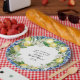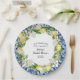 Diese Papiertafel aus Brautparty wurde zur Koordination mit der Jenny's Lemon Collection entworfen und weist einen gelben Zitronen- und Blumenkranz auf. Die blauen Kacheln sind um den Rand des runden Aufklebers herum eingeprägt. Sie fand, dass ihr Hauptpresse den Brautparty-Text beginnt. Der Name und das Brautparty der Braut sind in einem modernen und trendigen Schriftart geschrieben. Das Datum vervollständigt den Text. Der gesamte Text ist bearbeitbar.
