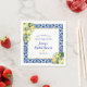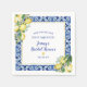 Diese Serviette aus Brautparty, die zur Koordination mit der Jenny's Lemon Collection konzipiert wurde, ist mit gelben Zitronenbouquets ausgestattet, die einen viereckigen, blauen Kachel- und Goldrahmen zieren. Sie fand, dass ihr Hauptpresse den Brautparty-Text beginnt. Der Name und das Brautparty der Braut sind in einem modernen und trendigen Schriftart geschrieben. Das Datum vervollständigt den Text. Der gesamte Text ist bearbeitbar.