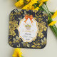 Ein elegantes Brautparty-Design mit Bienen und goldenen Blume-Hintergrund und einem orangefarbenen Coquette-Bogen.