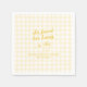 Feiern Sie die kommenden Nuptials Ihrer Lieblings-Braut im Stil mit unserem sonderbaren und whimsical "She found her Honig" Brautparty Servietten! Dieses Design zeigt handgezeichnet Abbildungen einer Biene und eines Honigtopfes in einem lustigen und spielerischen Stil, begleitet von einem lässigen, handgeschriebenen Schriftart, der die Spannung und Freude des Ortes perfekt einfängt. Das Schild kommt in einem lustigen Farbschema von Honiggelb auf einer weichen Butter gelben Gingham gemustert Hintergrund.