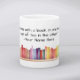 Gutes Geschenk für jeden Leser. In dieser Tasse finden Sie ein Bücherregal in leuchtenden Farben mit einem Imitat "Zitat", das Sie personalisieren können. "Du wirst mich mit einem Buch in der einen Hand und einer Tasse Tee in der anderen finden." Welcher begeisterte Leser und Teetrinker würde dem nicht zustimmen? Eine Tasse ist ein wunderbares kleine Geschenk. Ändern Sie das Zitat und/oder den Namen, indem Sie den Link "Diese Vorlage anpassen" verwenden. AI unterstützte Grafik, die mit kommerziellem Einsatz erworben wurde. Kunstwerk: MokoDE
