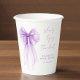 Sie knüpft den Knoten Hochzeitsbrause mit violette Pappbecher