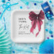 Sie knüpft den Knoten - Roter Bogen Junggesellinne Pappteller