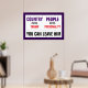 Land über Trump. Menschen über Persönlichkeit. Trumpismus ist eine schlechte, giftige Beziehung. Erinnern Sie Ihre Nachbarn daran, dass sie Trump und Trumpismus jederzeit zurückhalten können, genau wie sie einen schlechten Job verlassen haben. Es ist an der Zeit, alle unsere Menschen über seinen egomaniakisch bösartigen narzisstischen Personenkult zu stellen. Designbeschreibung: Die Hintergrundschicht ist ein dunkles lila, was bedeutet, dass Menschen über das politische Party gestellt werden. Darüber befindet sich ein weißes Rechteck mit einem hellgrauen Rand. Im oberen Drittel ist Text in zwei Hälften unterteilt. Auf der links Seite steht: "Land über Trump." Auf der rechten Seite steht: "Menschen über Persönlichkeit." Die Wörter Land und Menschen sind beide in dunklen lila Sans Serif Schriftart, das Wort darüber ist in schwarzen Handschrift Stil Schriftart, und die Worte Trump und Personality sind in roten Sans Serif Schriftart, beide Wörter ungefähr die gleiche Größe. Da Persönlichkeit ein langes Wort ist, bedeutet das, dass Trump in relativ geringem Text steht, was seinen Namen unbedeutend macht. Darunter, oben im unteren Drittel, befindet sich eine Linie in demselben hellgrauen wie der Rechteck. Unter dieser Zeile, in schwarz, sind alle Kaps serifenlosen Schriftart die Worte: "Du kannst ihn verlassen haben." Das gleiche Design auf beiden Seiten.