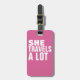 Spaß und feminine Typografie-Design mit fett weißem Text "SHE REIST A LOT" in einem rosa-Tag, und mit zusätzlichen Informationen auf der Rückseite.. für eine Frau, die immer reist. Ein Gepäckanhänger mit einem Namen ist für die Reise aus mehreren praktischen Gründen wichtig. Erstens dient es als eine schnelle und einfache Möglichkeit, Ihr Gepäck am Meer ähnlicher Gepäckstücke an Flughäfen, Busstationen oder anderen Verkehrsknotenpunkten zu identifizieren. Dies rette Ihnen Zeit und reduziert das Risiko, versehentlich die Tasche eines anderen mitzunehmen oder einen anderen mitzunehmen. Zweitens bietet ein Gepäckanhänger mit Ihrem Namen einen wichtigen Kontaktlink für den Fall, dass Ihre Tasche verloren geht. Im unglücklichen Fall, dass Ihr Gepäck während Ihrer Reise fehl am Platz ist, wird es für das Personal von Fluggesellschaften und Transportunternehmen durch den Namen und die Kontaktdaten des Gepäcks wesentlich einfacher, Sie mit Ihrem Gepäck zu vereinen. Diese einfache Maßnahme erhöht die Wahrscheinlichkeit eines schnellen und präzisen Abrufprozesses. Zusätzlich zu den praktischen Vorzügen sorgt ein Namensschild-Gepäck auch für mehr Sicherheit. Indem Sie Ihren Namen deutlich anzeigen, halten Sie potenzielle Diebe oder solche mit ähnlich aussehenden Taschen davon ab, Ihr Gepäck zu beanspruchen oder zu öffnen.