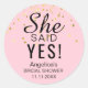 "SIE SAGTE JA" Brautparty Rosa Rose Gold Runder Aufkleber