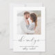 Unsere Einladung zu unserer Best Living Party erhält ein modernes Update! Unsere "She Said Yes Calligraphy Engagement Party Invite" zeigt Ihr Foto in der Verlobung mit handgeschriebenem kalligraphischem Sprichwort "sie sagte ja", gefolgt von Ihren Namen und Ankündigung Ihrer Verlobungsparty, in einer Kombination aus weißen Sans Serif und handgeschriebenen Kalligraphie-Skript-Schriftart. Die Rückseite der Karte zeichnet sich durch einen schwarz-weißen Aquarellhintergrund mit dem Datum, der Lage und den UAWG Details des Party aus - eine wunderschöne, moderne Einladung zur Verlobung! Copyright Anastasia Surridge Designs, alle Rechte vorbehalten.