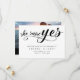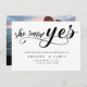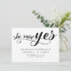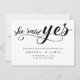 Moderne minimalistisch schwarz sagte sie ja Drehbuch Save the Date Karte. Diese elegante Karte verfügt über handgeschriebene Schrift in schwarzer Schrift mit niedlichem rotem Herz über dem Text "she say yes" auf weißem Hintergrund und Ehedetails und Namen in Hauptstadt Schrift in schwarz Farbe geschrieben.Add Website und Foto auf der Rückseite der Karte. Um diese Vorlage zu bearbeiten, klicken Sie auf Weitere Anpassung.