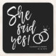 Sie sagte ja! | In-Party-Script schwarz Rechteckiger Pappuntersetzer
