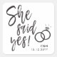 Sie sagte ja! | Skriptbuchstaben der Bereitstellun Quadratischer Aufkleber