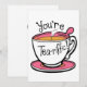 Die Karte "You're Tea-riffic", eine reizvolle und herzliche Art, jemandem zu zeigen, wie viel sie Ihnen gemein sind! Auf dieser Karte befindet sich ein niedlicher Teekeller mit einem lächelnden Gesicht, begleitet von der fröhlichen Botschaft "You're Tea-riffic". Es ist perfekt für jeden, der einen guten Wortspiel Liebe und eine gemütliche Tasse Tee genießt.