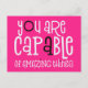 Trendy Typografie mit ermutigenden Zitat Sie sind in der Lage Phantastische Dinge in Weiß mit einer Touch von schwarz auf einem heißen rosa Hintergrund. Der rosa Hintergrund kann auf Wunsch in eine andere Farbe geändert werden.