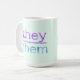 Pronoun-Label mit lustiger Drehung: ein Minzhintergrund mit pastellfarbenem, variierten Text. Gib auch deinen Namen! Ideal für Transmenschen, Enby, Gender Fluid oder nicht konforme Menschen. Genießen Sie die Aussprache, während Sie die Vorteile dieser schönen Tasse genießen.
