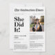 Ein stolzer Moment verdient eine besondere Ankündigung! Feiern Sie diese großartige Leistung mit einer klassischen Abschluss-Einladung im Zeitungsstil. Das zeitlose Schwarz-Weiß-Design und die elegante Typografie zeugen von der Begeisterung und dem Stolz dieses Meilensteins. Ob für die Oberschule, die Uni oder einen Master's Abschluss, diese preisfreundliche und stilvolle Einladung teilt wunderbar den Erfolg dieses unvergesslichen Tages.
