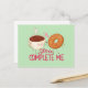 Sie vervollständigen mich Niedlich Donut Funny Val Postkarte