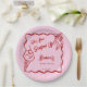 Sie wurde hochgeschnürt Brautparty der scharfen Rahmen Skizze mit Monogramm gedruckte Papier Teller Vorlage, Eis mit einer Kirsche auf der obersten gewölbten Rand Band Coquette Brautparty personalisierte Namen Papier Teller, rot-rosa Coquette Brautparty Papier Teller, handrawn Brautparty personalisiert Tischdekor