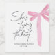 Erhöhen Sie Ihr Brautparty mit dem "She’s Tying the Knot" Pink Bow Wine Label! Dieses stilvolle Weinlabel besticht durch ein elegantes Bogen-Design und einen individuell gestaltbaren Text. Freuen Sie sich auf eine personalisierte und elegante Touch für Ihre Feier, die sich ideal für eine Party- oder Vorzeigedekoration eignet.