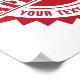 Passen Sie alle Texte in diesem roten Siegel der Genehmigung oder des Aushängeschilds an. Bearbeiten Sie den Text in allen drei Zeilen. Der Hintergrund ist eine Siegel-Grafik vom Sonnenbursttyp mit Kreisschichten und kleinen Sternen für ein offiziell aussehendes Siegel.