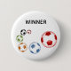 Gewinner Fußball oder Fußball Set der Bälle Button. Gewinnertext kann personalisiert sein. Behalt die Fußball-Bälle rollen.