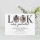 Feiern Sie zwei Meilensteine im modernen Stil mit dieser skurrilen gemeinsamen Abschlussfeier-Einladung. Mit einem sauberen weißen Hintergrund und dem lustigen Spruch „Seht mal, wer graduiert ist“ verwendet das Design clever die Buchstaben „O“ als Bilderrahmen, jeweils akzentuiert mit einer Abschlussmütze für eine spielerische und dennoch elegante Note – perfekt, um beide Absolventen in Szene zu setzen.