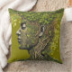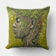 Sierkussen in groen met een afbeelding van een gezicht in boomvorm. Tekst 'we are all part of nature' op de achterkant met vallende bladeren ,