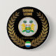 Das nationale Wappen Sierra Leones ist Set auf schwarzem Grund. Das Emblem wird in eine goldgerippte Kreissage in einem Imitat eingegossen, die wiederum in der Mitte eines Imitats goldenen Lorbeerkranzes verschlungen ist. Am Fuß des Kranzes befindet sich die Nationalflagge, die in einen Kreis eingedrungen ist, der Teil des Kranzes ist. Das Design wird durch den Ländernamen ergänzt, der auch in Imitat Gold ist.