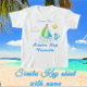 Spaß bunt Siesta Key, Florida Ozeanwellen, Sonne und Segelboot Kinder Souvenir T - Shirt. Das Schiff ist helltürkisblau, weiß und gelb. Es gibt eine Puffwolke, hellgelbe Sonne und blaue und weiße Wellen. Siesta Key, Florida ist im Skript unter den Wellen, in hellblau mit einer dunkelblauen Kontur. Über dem Bild befindet sich eine Vorlage für den Namen des Kindes.