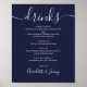 Dieses elegante Skript minimalistisch marineblaue Getränke Menü-Schild ist perfekt für Ihre Hochzeitsfeier. Entwickelt von Thisisnotme©