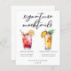 Cette carte chic signature mocktails propose une tyopgraphie noire simple au-dessus de 2 boissons mignonnes et leurs ingrédients pour votre bar mariage. Un temple de Shirley et une vierge non alcoolisée Piña Colada ajoutent une touche cool à votre menu du bar. Complétez avec les noms du couple et la date de leur réception.