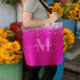Erstellen Sie Ihre eigene personalisierte Monogramm-Einkaufstasche für eine Brautjungfrau. Fuchsia ombre Farbverlauf Imitate Folie und Silber Glitzer digitale Kunst Grafik. Moderne, rosa und weiße Monogramm mit elegantem Kalligraphiedesign im Stil der Signatur. Sie können den Stil oder die Farbe des Schriftartes nach Ihren Vorstellungen anpassen und ändern. Alle Satin- und funkelnd Glitzer-Effekte werden wie ein Foto auf Ihr Geschenk gedruckt.