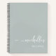 Minimalistisch Sage Green Elegant Girly Monogram Name Signature Script Custom Personalisiert Cookbook Rezept Notebook. Diese Design mit Ihrem Vornamen in einem hübschen handgeschriebenen Stil Swash Schwanz Schriftart Typografie auf schlanke grüne oder staubgrüne Farbe Hintergrund. Diese sind einfach zu anpassen und können als Cookbook, Rezeptplaner und mehr verwendet werden. Auch große stilvolle feminine Geschenke zum Geburtstag, Hochzeit, Brautparty, Muttertag, Jubiläum und für alle, die Lieben glamourösen Stil.