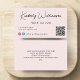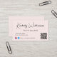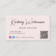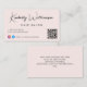 Chic hellrosa Visitenkarte mit Ihrem Namen oder Ihrer Marke in einem stilvollen Signaturskript und Geschäftstyp in einfachem, modernem Schriftsatz präsentiert. Geben Sie Ihre Website URL-Adresse ein, um einen QR-Code für Kunden und Kunden zu erstellen, um nach einer Liste Ihrer Produkte, Dienstleistungen, Stunden usw. zu suchen, und fügen Sie Ihre Instragram und Facebook-Benutzer-ID für Kunden, um Sie auf sozialen Medien zu verfolgen. Sie können zusätzliche Informationen auf der Rückseite hinzufügen oder leer verlassen.