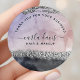 Signature Script Watercolor Lila Black Silver Classic Round Sticker. Ideal für einen Schönheitssalon, einen Friseur, einen Schminkkünstler oder Kosmetologen.