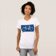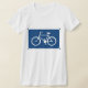 Ce design est un panneau de vélo. Le panneau est un vélo blanc sur un arrière - plan bleu. Ce panneau de vélo a l'air superbe sur ce T-shirt femme
