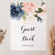 Ce panneau élégant et simple de livre d'or floral hivernal est parfait pour un mariage moderne ou une douche de mariée. Le design présente de magnifiques fleurs peintes à la main en bleu foncé, bleu, marine, rose, blush, or et feuillage vert, rassemblées en bouquets élégants.
