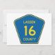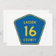 Cette conception est un panneau routier de comté lassen. Le panneau indique le comté de Lassen avec un numéro 16 dessus. Ce panneau routier de comté lassen a l'air magnifique sur ces invitations
