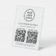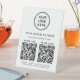 Panneau de pied de table moderne et professionnel à usage général pour votre entreprise. Téléchargez votre logo et 2 codes QR pour que les clients les scannent pour le paiement, les informations, une liste de vos produits, services, prix, etc. Étiquetez les codes QR et ajoutez le nom de votre entreprise, numéro de téléphone, adresse, site web ou d'autres informations en typographie simple.