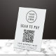 Panneau de piédestal de table moderne pour votre entreprise avec un code QR pour les clients à analyser pour les paiements, vous permettant de recevoir des paiements à tout moment, n'importe où. Téléchargez votre logo et ajoutez votre nom d'entreprise, votre numéro de téléphone et votre adresse de rue ou toute autre information dans une simple typographie. Entrez l'adresse de votre site de paiement pour créer automatiquement un code QR numérisable.
