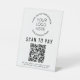 Un simple panneau de piédestal de table moderne pour votre entreprise avec un code QR pour les clients à analyser pour les paiements. Ajoutez le logo de votre entreprise et le code QR, ainsi que votre nom commercial, votre numéro de téléphone et votre adresse municipale en simple typographie.