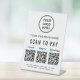 Un simple panneau de piédestal de table moderne pour votre entreprise avec Venmo, Paypal et CashApp QR codes pour les clients à scanner pour les paiements. Ajoutez votre logo, vos codes QR, votre nom d'entreprise, votre numéro de téléphone et votre adresse de rue dans une simple typographie.